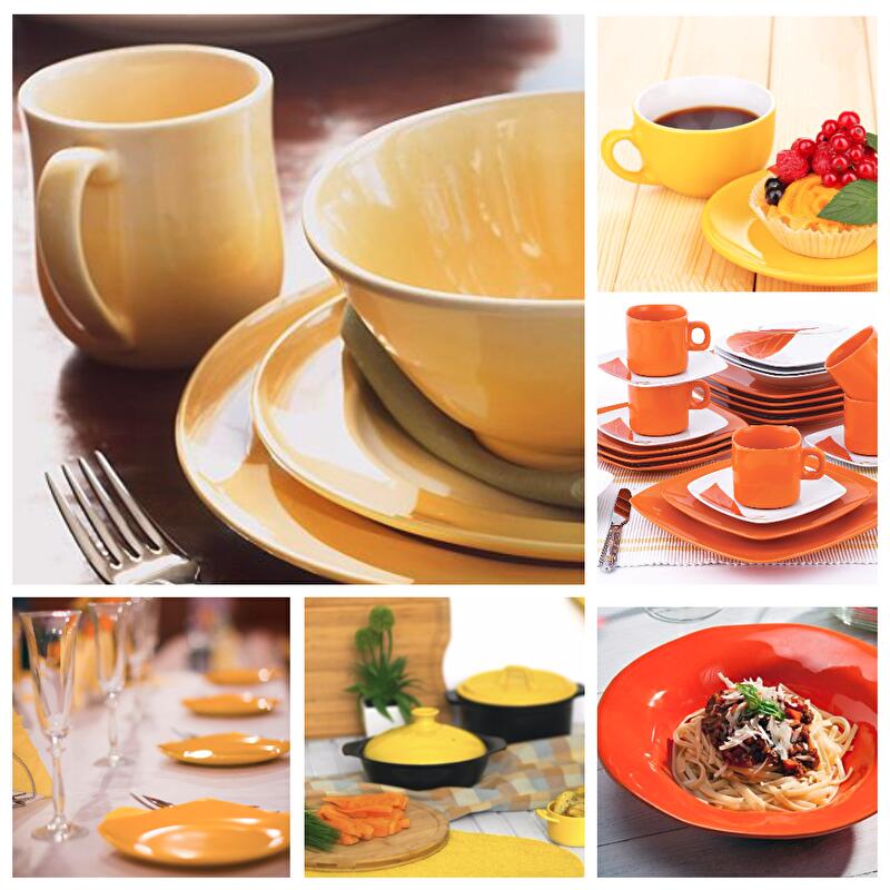 Теплые оттенки — желтый, оранжевый и горчичный производят противоречивый эффект. Они позволяют быстро наесться, но одновременно повышают аппетит. Удачным решением будет использование желтых тарелок под первые блюда. Суп или бульон дадут почувствовать сытость, прежде чем можно будет съесть лишнюю порцию гарнира.