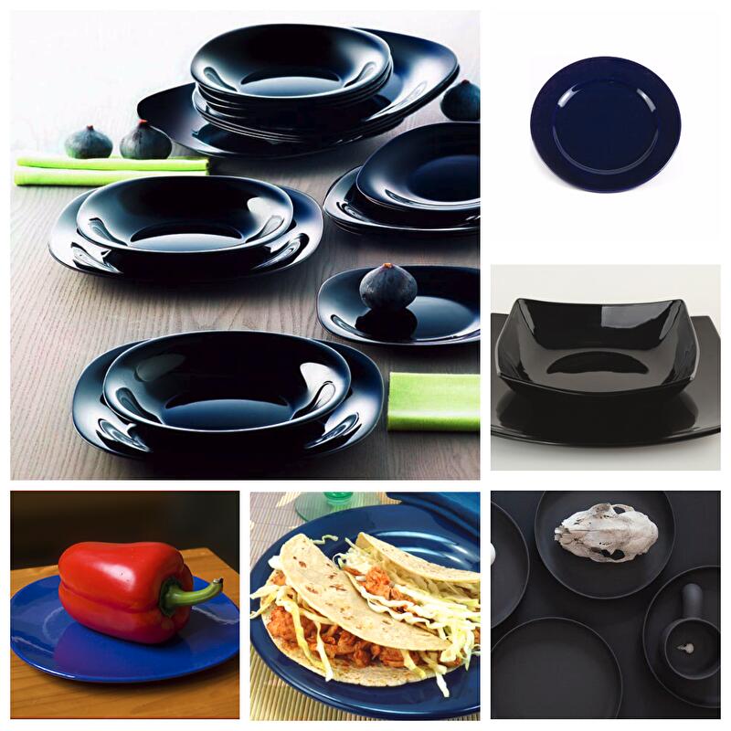 Посуда тяжелых, суровых цветов — черного, глубокого синего и фиолетового выглядит роскошно, когда стоит как декор в кухне. Еда, поданная в такой посуде, теряет привлекательность, поэтому размер порций может заметно снизиться, равно как и аппетит.