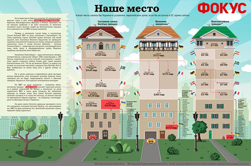 Но в целом картинка в европейском доме выглядит вполне гармонично: если экономика занимает верхние этажи, примерно там же будут "квартировать" богачи и обычные граждане. Украина из этой картины категорически выпадает.