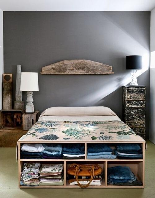 Наконец-то мы перешли к вопросу хранения тех вещей, которые можно носить каждый день. Первое, что пришло на ум – это чудные полочки и кармашки из текстиля, которые крепятся к стене. Такие приспособления можно увидеть, например, в каталоге Икеа. Текстильные полки могут быть установлены как внутри шкафа, так и просто в комнате. Их огромный плюс заключается в том, что по мере необходимости, они легко складываются и не занимают много места.
