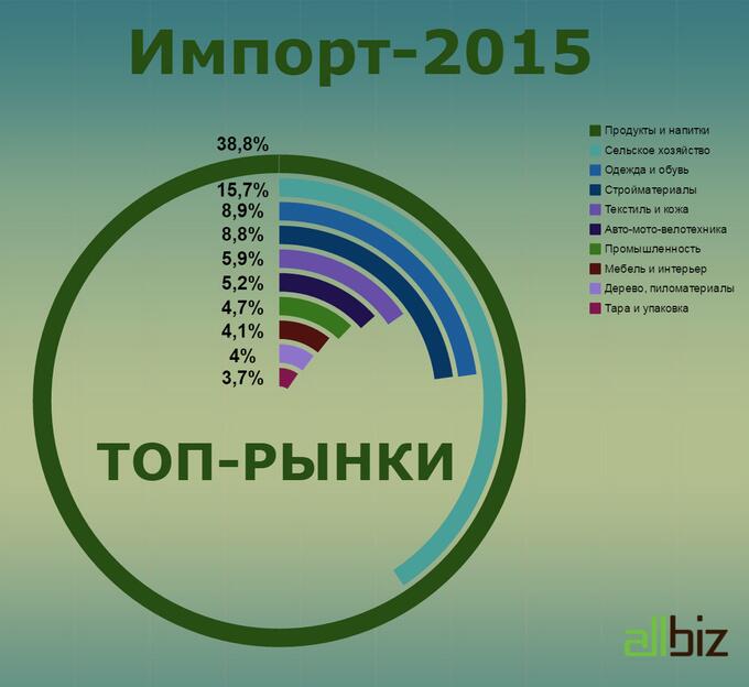 По данным Международного центра интернет-торговли Allbiz, рынками, в рамках которых Украина больше всего импортировала товаров, в прошлом году, как ни удивительно, были рынок продуктов и напитков, сельскохозяйственный и одежный рынки; лишь незначительно от последнего оторвался рынок строительных материалов. Очевидно, что по всем этим направлениям наша страна как раз сильна и может в большинстве случаев обеспечить себя самостоятельно. В десятку самых объемных рынков по импорту вошли: