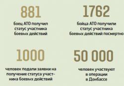 Право на получение статуса участника АТО имеют около пятидесяти тысяч человек. Правда, сделать это непросто: кроме того, что нужно оформить документы, не все командиры готовы во время боевых действий заниматься бумажной волокитой. Но юристы советуют торопиться, ведь каждый участник будет иметь право на скидку при оплате коммунальных услуг, освобождаться от уплаты подоходного налога и сможет бесплатно отдыхать и лечиться.