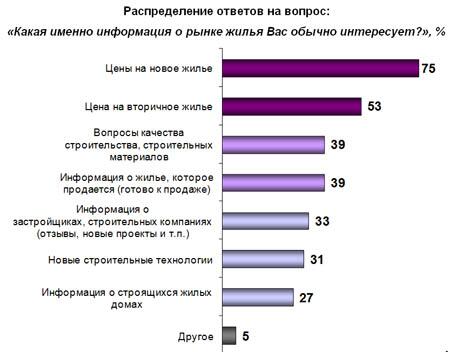 1) Уровень интереса респондентов к информации о рынке жилья достаточно высок (55%), особенно это наблюдается у тех опрошенных, которые собираются приобретать жилье.