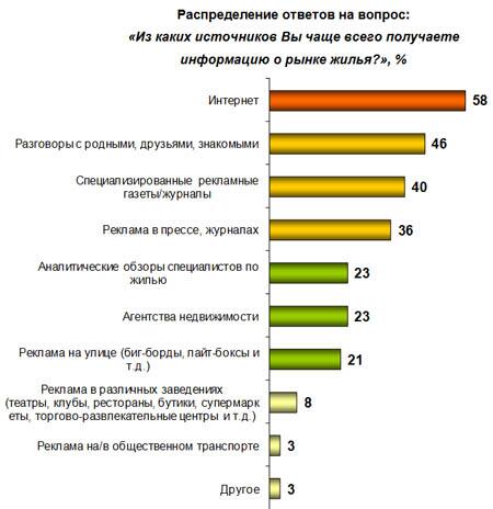Если ранее (2-3 года назад), по данным наших исследований, наиболее популярным источником получения информации о рынке недвижимости были печатные носители, то сейчас это Интернет.