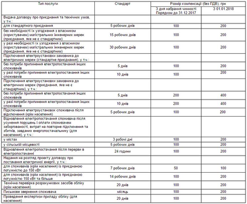 Национальная комиссия, осуществляющая государственное регулирование в сферах энергетики и коммунальных услуг установила гарантированные стандарты качества услуг по энергоснабжению.