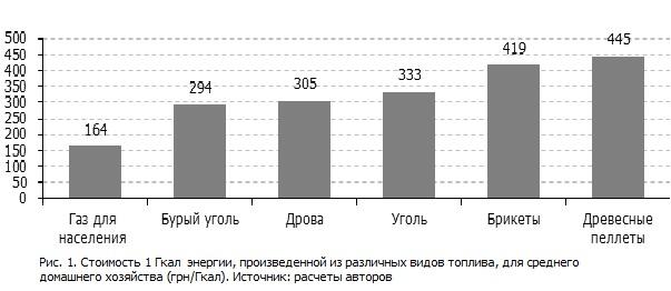 Природный газ является самым дешевым и наиболее удобным источником энергии для населения в Украине по сравнению с дровами, углем, брикетами и др. (за исключением, пожалуй, электроэнергии). Население платит 164 грн за 1 Гкал энергии, полученную от сжигания природного газа. Это в два раза дешевле, чем цена такого же количества энергии, полученного от сжигания угля, и почти в три раза дешевле по сравнению с экологически чистыми древесными брикетами. После первоначальных инвестиций в подключение к газовой сети у потребителей нет никаких проблем, связанных с закупкой, доставкой или хранением газа, а также с вывозом отходов, как в случае с твердым топливом. В результате переход с природного газа на другие виды топлива, инвестиции в утепление помещений или покупку более эффективных котлов не имеют никакого экономического смысла, так как окупаемость этих проектов не будет достигнута в разумные сроки. Говоря языком бизнеса, возврат к инвестициям в альтернативные источники энергии будет иметь негативные последствия. Таким образом, низкие тарифы на газ поощряют его неэффективное использование и препятствуют введению энергосберегающих технологий на уровне домашних хозяйств.