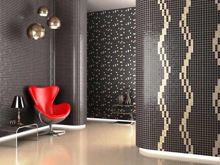 Мозаика хороша своей универсальностью. Маленькие квадратики набегают на стены, внося веселый сумбур или, напротив, подчеркивая основательность утверждения, что большое складывается из малого. В любом случае стоит присмотреться к возможности поиграть цветами, фактурами и формами.