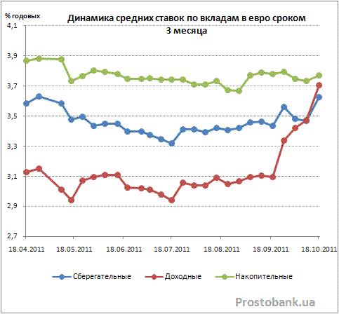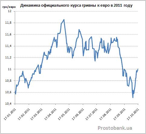А непосредственной темой сегодняшнего обзора стали депозиты в евро от украинских банков. Можно сказать, что вклады в евро на сегодня обрели актуальность. Во-первых, это связано со снижением стоимости этой валюты: если еще в начале мая-2011 официальный курс гривны к евро превышал отметку в 11,8 гривен за евро, то на сегодня он близок к 11 гривнам за евро, а в начале октября-2011 и вовсе был на уровне 10,5-10,6 гривен за единицу европейской валюты.