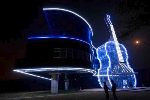 В 2007 году в китайском городе Хуайнань было построено необычное здание — дом в форме рояля и скрипки. Разработкой проекта занимались студенты Хефейского технологического университета совместно со специалистами дизайнерской компании Huainan Fangkai Decoration Project Co.