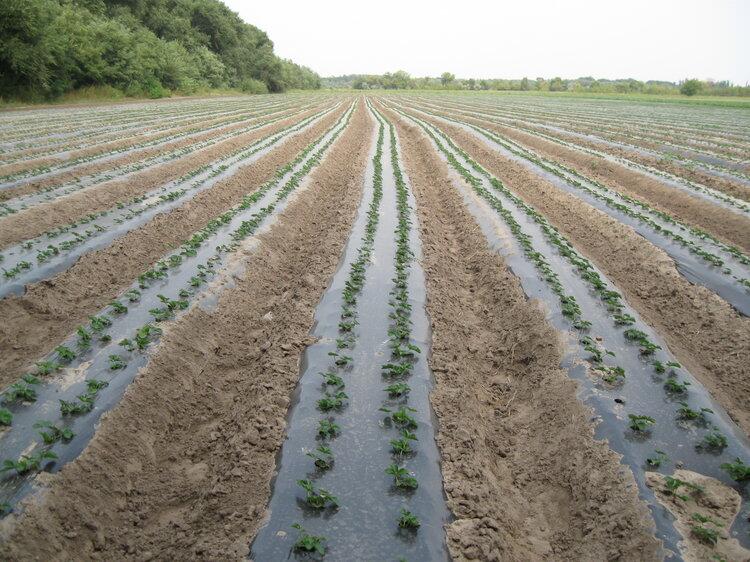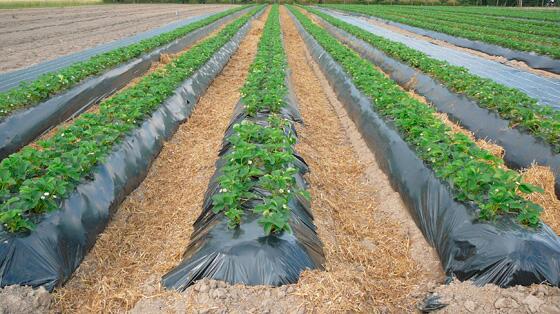 Кооперативная клубника выращивается не совсем так, как мы привыкли видеть в своем огороде. Здесь существует специальная технология, как ее называют на пленке или на гребне. Специальной машиной делается гребень и на него кладется капельный канал и пленка, которая защищает растения от сорняков, а также не дает испаряться воде, которая попадает в растения.