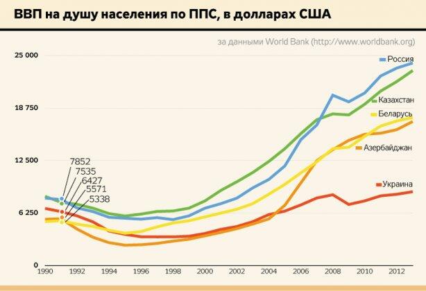 Абсолютно очевидно, что такая разница в макроэкономических показателях не может не влиять на состояние экономики. В последнее время в нашей стране принято во всем обвинять коррупцию. Но коррупция ведь в России, Азербайджане или Казахстане не меньше украинской, а в Беларуси ее практически нет, поэтому очевидно, что в этом случае она имеет второстепенное значение.