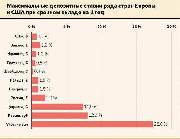 В работе "Банковое дело", изданной под редакцией профессора М.Боголепова в России в начале XX века, приводится так называемая органическая теория государства, согласно которой банковская система — это сердце государства, а деньги выполняют функцию крови. Как государство не может существовать без банковской системы и денег, так и экономика не может работать без кредитов. Поскольку 70% денежной массы Украины составляют депозиты, именно ставки по ним и определяют стоимость кредитных ресурсов, которые, как правило, минимум на 5 процентных пунктов превышают депозитные. Депозитные же ставки в Украине в национальной валюте в два, а в иностранной — в четыре раза выше, чем аналоги в России или Азербайджане. Отличие с развитыми стра-нами достигает десятков раз.
