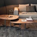 Здесь, конечно же, на первый план выходит внешний вид изделия, а не его функциональность. Дизайнерский кофейный столик, в отличие от классического, может иметь любую, даже самую причудливую форму, и быть изготовленным из самых разнообразных материалов: от стекла (включая опорную часть) до практически неотесанного спила коряги, установленного на ножки из металла.