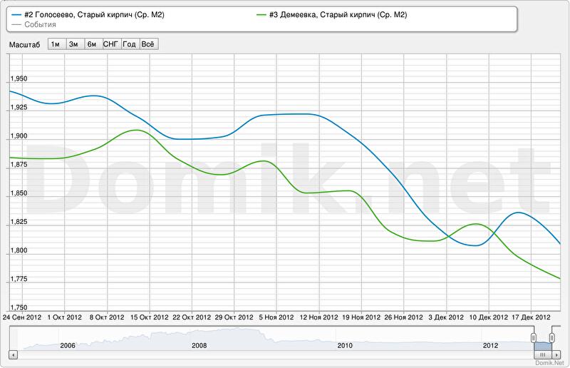 Статистика цен предложений (в долларах за квадратный метр) на Демеевке в сегменте «старый кирпич» за последние три месяца снизилась на 5,6%; за последнюю неделю снизилась на 1,1%