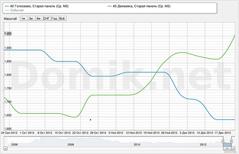 Зеленая кривая – статистика цен предложений на Демеевке