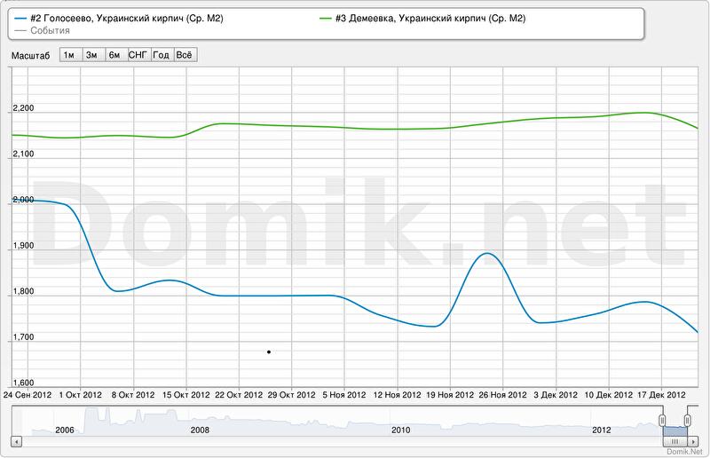 Статистика цен предложений (в долларах за квадратный метр) на Демеевке в сегменте «украинский кирпич» за последние три месяца выросла на 0,6%; за последнюю неделю снизилась на 1,6%