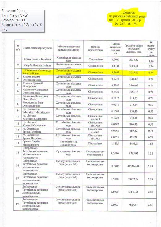 – Присяжнюк Тетяна Борисівна, ділянка 0,24 га оформлена восени 2011р., будинок 527кв.м, добудований у 2012: