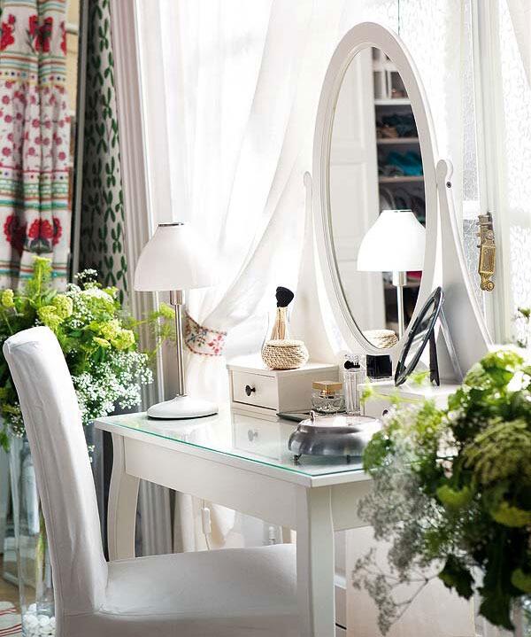Этот вопрос особо актуален для обустройства спален для женщин и семейных пар. Одни привыкли накладывать макияж и делать прическу перед зеркалом в ванной или другой комнате, а другие для этих целей предпочитают уютный уголок с туалетным столиком. Кому-то просто важно иметь маленький комод или большой ящик в шкафу для косметики.