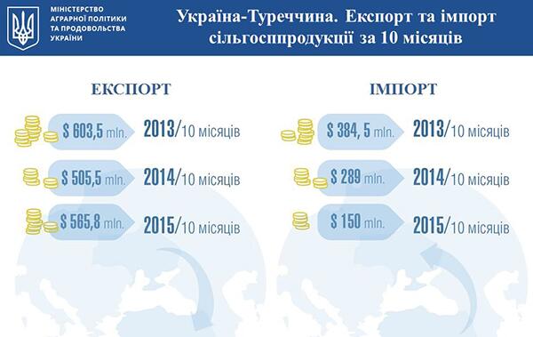 За десять місяців 2014 року Україна експортувала до Туреччини агропромислової продукції на 505,5 млн дол.