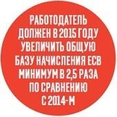Чтобы предприятие могло с 1 января 2015 года платить ЕСВ по сниженной ставке, сумма основной и дополнительной зарплаты его работников, а также других поощрительных выплат, например, премий (т. е. база для начисления налога) в этом году должна быть минимум в 2,5 раза больше, чем в 2014-м. При этом сравниваются сумма за январь 2015 года и среднемесячный показатель за 2014 год (общая сумма за год, разделенная на 12).