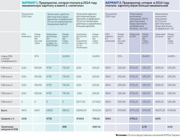 Не смогут воспользоваться льготой и работодатели, в бизнесе у которых — низкие зарплаты. По словам Алексея Хомякова, чтобы применить понижающий коэффициент, необходимо, чтобы средняя зарплата на предприятии составила не менее трех минимальных зарплат (3654 грн, исходя из минималки на 1 января 2015 года). Если же она ниже, механизм не работает. А в эту категорию попадут как многие представители малого бизнеса, так и некоторые крупные промпредприятия. Эксперт из KPMG полагает, что предприятиям, где средняя зарплата и раньше была не менее 3654 грн, достаточно поднять средний уровень окладов на 30%. Это даст возможность применять к ставке ЕСВ коэффициент 0,77.