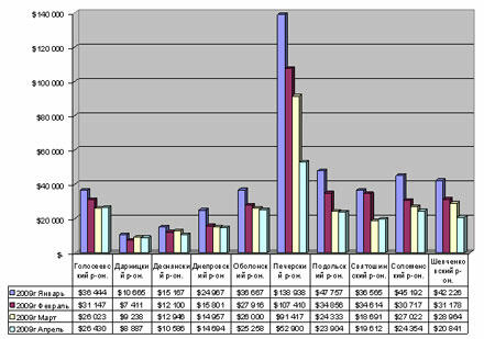 январь-апрель, по районам Киева ($ за сотку)