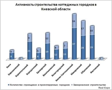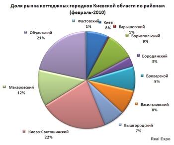 По количеству коттеджных городков Киево-Святошинский район занимает 22% от общей доли рынка, т. е является лидером.