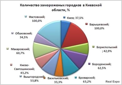 Из 29 проектируемых и строящихся городков, в 10 из них строительство заморожено, что составляет 34,5%.