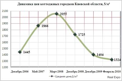 Средняя стоимость 1 кв.м в коттеджных городках Киева по состоянию на 1 марта 2010 года составляет 2493 доллара.