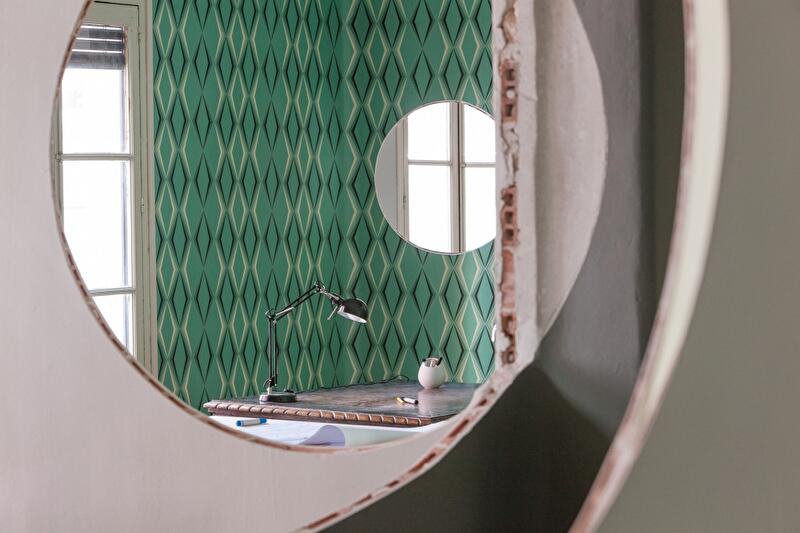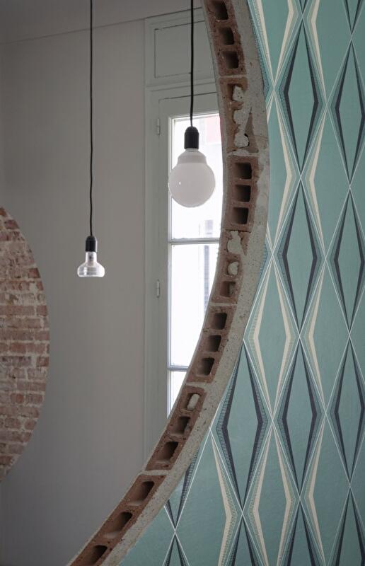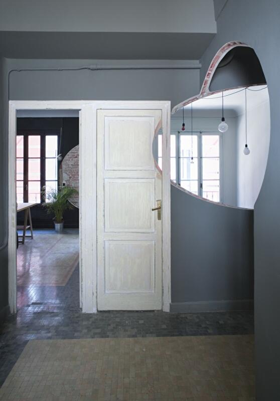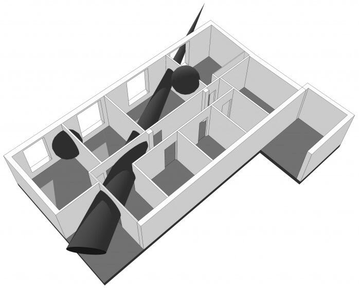 По примеру работ американского художника Гордона Матта-Кларка, прославившегося благодаря своей «анархитектуре», они решили использовать метод вычитания архитектурных структур как средство для преобразования будущего офиса Impact Hub. Архитекторы вырезали большие отверстия в стенах и дверях, так если бы всю квартиру «пронзил» большой прозрачный луч в виде конуса. Это и установило общую связь между всеми закрытыми помещениями. Без гигантской перфорации сохранились только две комнаты.