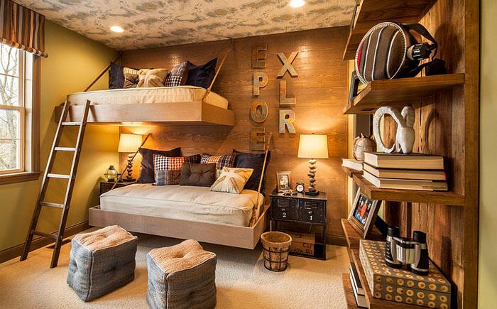 Дети очень быстро перерастают стили, темы, цветовые схемы, в которых обычно оформлены их спальни. Поэтому лучше выбирать тот стиль, который легко можно подкорректировать. Красота спальни в рустикальном стиле в том, что он легко сочетается с элементами других стилей, создавая живую оригинальную атмосферу. К тому же это отличный способ напомнить о замечательно проведённых каникулах где-то в горном шале в окружении потрясающей природы.