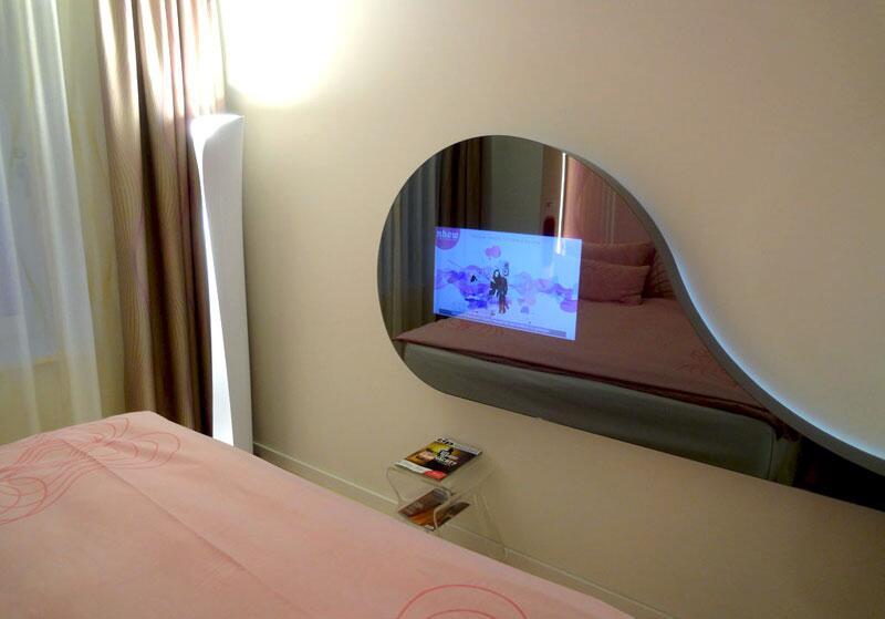 Номера снабжены всеми необходимыми технологиями, включая док-станции для iPod и IP-телевизоры, расположенные в зеркальных стенах, которые при выключении становятся абсолютно незаметными.