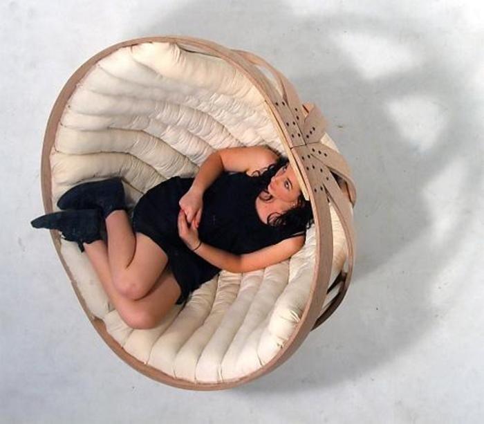 Это кресло-овал не сразу раскрывается перед вами. Пока на него не сядешь, не догадаться, что это именно кресло. Поэтому расположиться на нем смогут либо самые находчивые, либо сведущие. Некий тест на сообразительность для друзей и родственников.