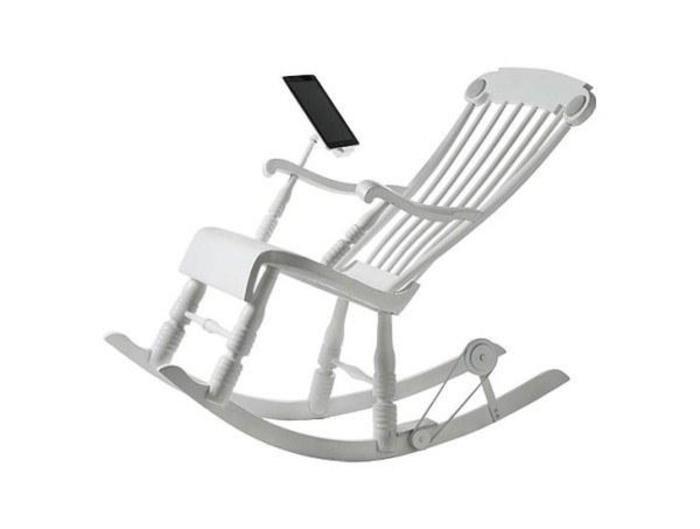 Невозможное постепенно становится возможным, и сейчас заряжать iPad реально всего лишь покачиваясь в кресле-качалке! Эта невероятная мечта стала реальностью благодаря iRock Micassa Lab. И теперь даже во время отключения электроэнергии iPad не останется без зарядки. Стойка для iPad, встроенные динамики на 25 ватт и крепления для iPad/iPod делают из обычного кресла—качалки ультрасовременное обновление. Крепление расположено таким образом, что пользователь может не только максимально расслабиться в кресле, посмотрев какой-нибудь фильм, но и качественно поработать — крепление можно отрегулировать, чтобы было удобно отправлять электронные письма.