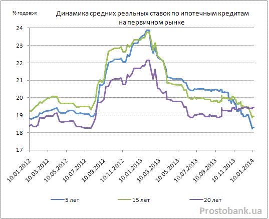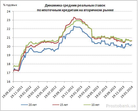 В позапрошлом, 2012, году средние реальные ставки по кредитам на покупку жилья на вторичном рынке постепенно росли. В уходящем 2013 г. средние реальные ставки продемонстрировали противоположную тенденцию – снижались. Подобная динамика объясняется стоимостью длинных денег для ипотечного кредитования. В 2012 году стоимость ресурсов была выше, а в 2013 ниже, это все объясняет. Имея доступ к денежным ресурсам с доступной стоимостью, банк охотно снизит ставку предоставления кредита с целью увеличения клиентопотока. Вероятнее всего, ипотечные кредиты с меншим авансом будут редкостью. Минимальный взнос в размере 20-25% является, на сегодня, оптимальным. При таком условии риск в этом параметре наиболее сбалансирован.