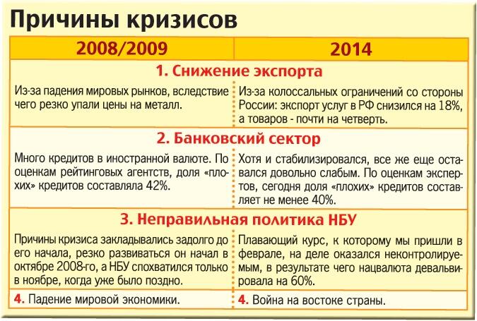 Эксперты говорят, что причины двух кризисов в чем-то похожи (подробнее см. таблицу), но не сомневаются: нынешний спад в экономике ударил по украинцам гораздо больнее, нежели предыдущий.