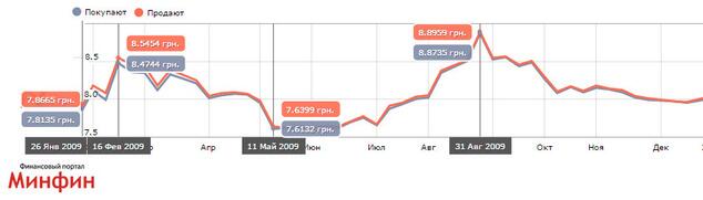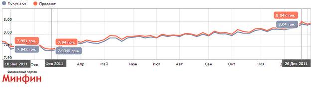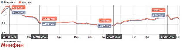 Гривна в 2010-м: ревальвация весной ниже 8 грн/$. За несколько следующих лет украинцы успеют привыкнуть к такому курсу