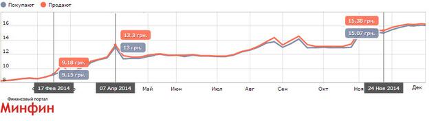 Экспортное и банковское лобби заинтересованы в краткосрочной девальвации гривны – особенно на фоне замедления внешних рынков и негативной внутренней обстановки. Глава Ассамблеи национальностей Украины Ровшан Тагиев отмечает, что «в девальвации была спекулятивная составляющая со стороны банков и некоторых сотрудников». По его словам, отток финансового и человеческого капитала из-за военных действий губительно сказывается на инвестиционной привлекательности страны, а это, в свою очередь, негативно отражается на курсе гривны. «У нас не могут быть дешевые ресурсы, потому что мы – в рисковой зоне. Из-за этого у нас низкий рейтинг. А из-за низкого рейтинга страны у нас высокие процентные ставки», – утверждает Тагиев. При этом сложно недооценить роль военного конфликта в обесценивании валюты.