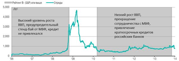 Суверенные спреды при уровнях кредитного рейтинга В- (S&P)