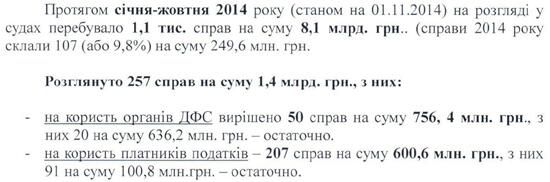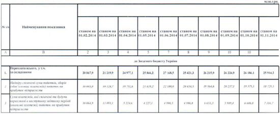 На 1 ноября 2014 года сумма переплат и авансовых платежей составила около 26 млрд грн, и это не предел. Ранее глава ГФС Игорь Билоус прогнозировал, что по итогам 2014 года этот показатель достигнет 27 млрд грн.