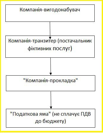 Компанія-вигодонабувач купує у компанії-транзитера фіктивні послуги в обсязі, що значно перевищує обсяг необхідних закупівель для виробництва. Таким чином вона отримує податкову накладну та право на податковий кредит.