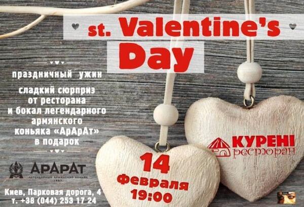 Всех, кто решит прийти на романтический ужин в ресторан «Курени» ожидает сладкий сюрприз от заведения и бокал коньяка «Арарат» в подарок. Начало в 19:00.