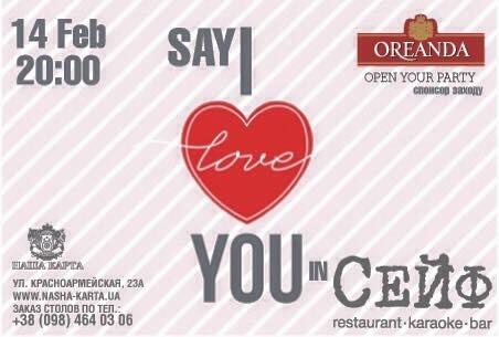 В течение всего вечера романтическое настроение гостей « Сейфа » будут поддерживать профессиональные актеры, а лейтмотивом станет выступление известного украинского диджея. 14 февраля в ресторане «Сейф» – шанс проверить, умеют ли петь ваши сердца в унисон. После развлекательной программы начнет работу караоке для влюбленных, где каждый сможет сполна продемонстрировать свои таланты. Начало в 20:00.