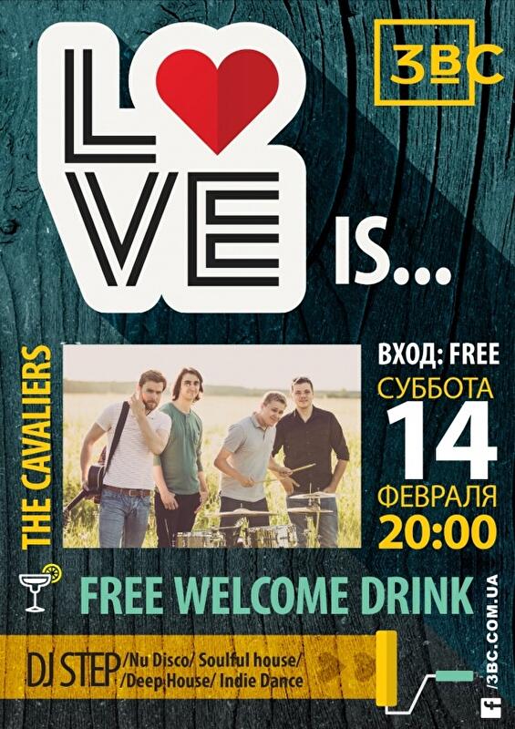 В 3 b café на Подоле 14 февраля пройдет вечеринка Love is…В программе вечера выступление группы The Cavaliers, всем гостям welcome drink. После концерта будет играть Dj Step. Начало в 20:00, вход бесплатный.