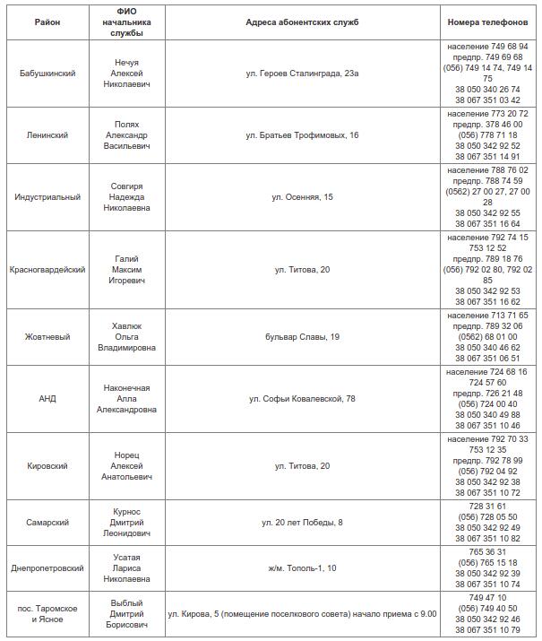 Днепрводоканал телефоны абонентских служб
