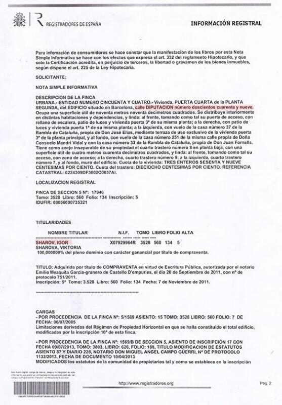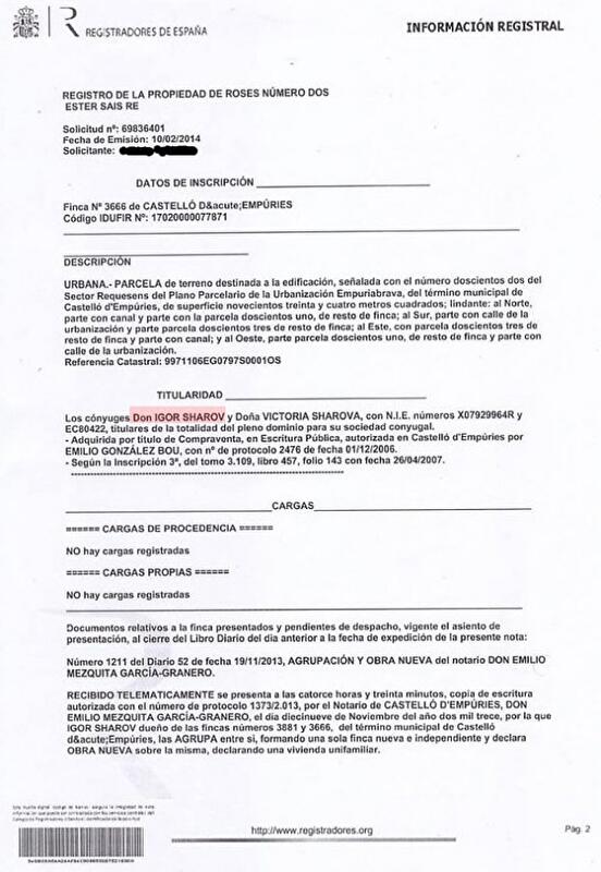 При чому в реєстраційних документах вказано податковий номер Шарова в Іспанії N.I.E. X07929964R