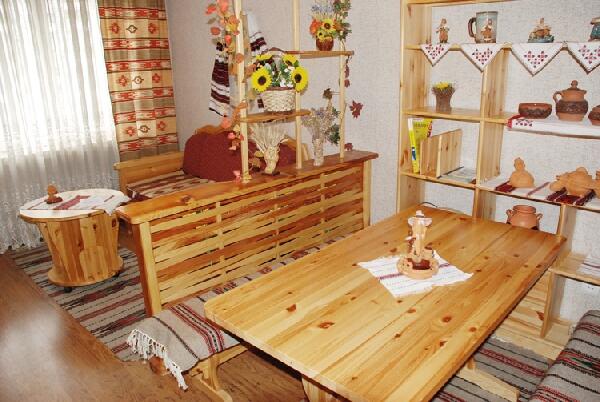 Главным предметом кухни является стол. Естественно, он должен быть деревянным и максимально (насколько позволяет площадь кухни) широким. Чтобы подчеркнуть стиль вашей кухни, можете накрыть его вышитой скатертью – смотреться будет великолепно. Также неотъемлемым элементом кухни в украинском стиле является обилие полок. Они исполняют не только функциональное, но и декоративное предназначение, ведь на них вы можете разместить милые безделушки в стиле этно.
