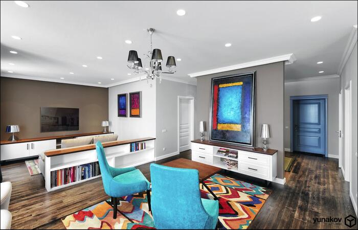 4. Принадлежит заказчику или автору проекта? Основная идея сделать квартиру в мягкой нейтральной гамме с цветовыми акцентами (картины, декор) Четкого стиля в квартире нет, современна эклектика с элементами арт деко.