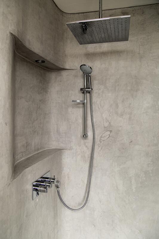Противостояние матового белого и глянцевого черного продолжается, охватывая встроенные системы хранения, шкафы и другую корпусную мебель. Квартира наполняется чередой бликов, отраженных от гладких плоскостей. Скругленные вырезы придают общей композиции динамику. «Шахматная» тема актуальна и в ванной комнате, только там противодействуют черная кафельная плитка и серый неокрашенный бетон.