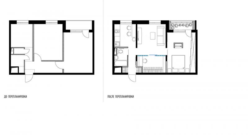 Эта квартира общей площадью 45 кв. метров принадлежит активной взрослой женщине. До ремонта пространство имело типовую планировку, после - интерьер оформили с учетом потребностей владелицы, которая работает в сфере красоты.